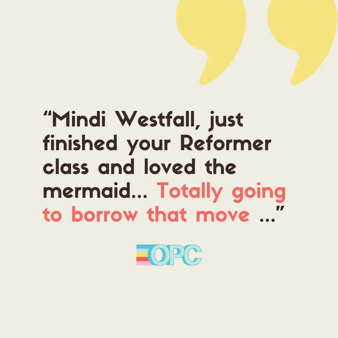 "Mindi Westfall, just finished your Reformer class and loved the mermaid and modified Star on the box. So good. Totally going to borrow that move."